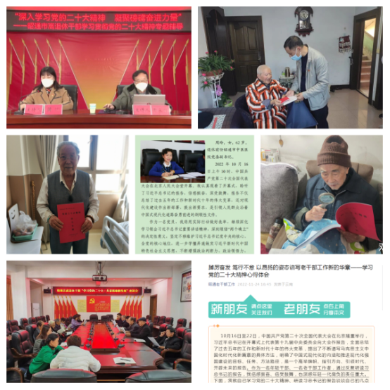 党的二十大胜利召开后,云南昭通市各级老干部工作部门认真谋划、及时行动,结合实际组织开展“送学上门”“集中宣讲”“以学促行”等形式多样的学习教育活动,以“四抓四强”持续推动离退休干部学习宣传贯彻党的二十大精神,确保离退休干部学习有保障、思想有收获、行动有指引。