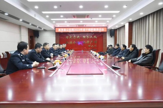 2023年1月12日下午,夏津县公安局召开老干部迎新春茶话会,副县长、公安局局长李雪峰出席活动并讲话,政委刘有彪主持会议,在家局党委与5名退休老领导参加,共同畅谈公安工作,共谋夏津公安发展。