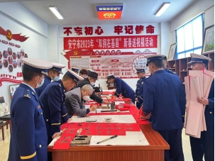 “无联不成春,有联春更浓。”1月17日,云南安宁市森林消防救援大队院内翰墨飘香、年味浓浓,安宁市退役军人事务局携手市老年大学在此开展“军民共建新春送祝福”活动,给部队官兵送去美好的新春祝福。