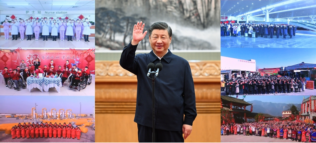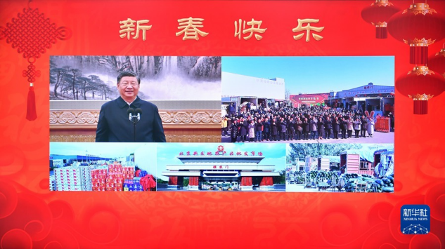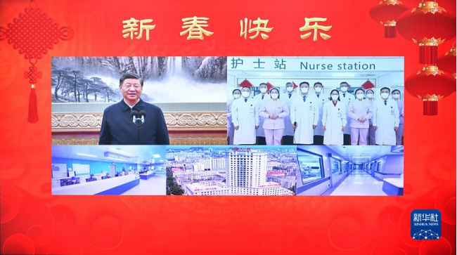 临近春节,神州大地处处洋溢着节日的喜庆气氛。1月18日上午,习近平在人民大会堂东大厅,同黑龙江、福建、新疆、河南、北京、四川等地基层干部群众视频连线,看望慰问防疫一线的医务人员、福利院的老年朋友、能源保供企业的员工、高铁站的干部职工、农产品批发市场的商户和群众、乡村基层的干部群众,给大家送去党中央的关心和慰问。
