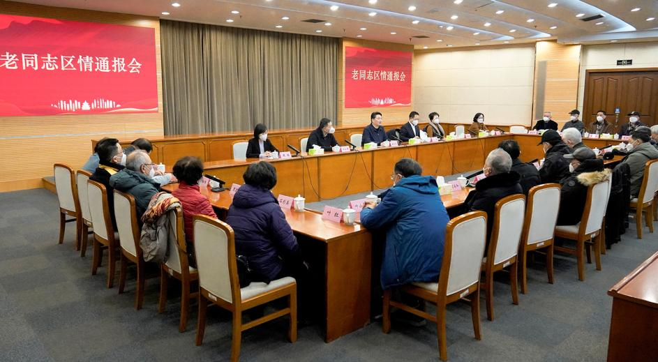 兔年新春佳节来临之际,1月17日上午,上海市普陀区召开老同志区情通报会。区委书记姜冬冬,区委副书记、区长肖文高,区人大常委会主任谈上伟,区政协主席杭春芳,区委副书记周艳,区委常委、组织部部长李红珍出席。