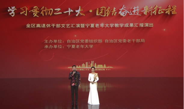 为深入学习宣传贯彻党的二十大精神及自治区第十三次党代会精神,充分体现广大离退休干部积极乐观、昂扬向上的精神风貌和感恩新时代、一生跟党走的炽热情怀,近日,由宁夏回族自治区党委组织部、老干部局主办,宁夏老年大学承办的“学习贯彻党的二十大·团结奋进新征程”全区离退休干部文艺汇演暨宁夏老年大学教学成果汇报演出,在宁夏电视台公共频道黄金时段播出。