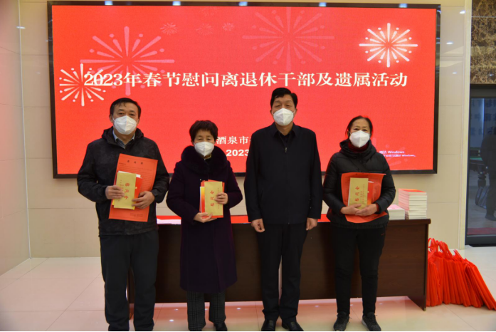 “暖”字为诀,务求实效。市委老干部局结合近期新冠疫情实际,考虑到离退休干部年龄偏大,身体免疫力相对较低等实际情况,1月16日至17日,在酒泉老年大学举办春节慰问离退休干部及遗属新春活动,市委组织部副部长、老干部局局长王建宏出席活动,并集中为居住城区的老同志送上“五个一”新春大礼包,即一封慰问信、一份慰问金、一套书籍、一个防疫“爱心药包”、一款助视器。集中慰问结束后,王建宏走访了詹吉有、塞力克、张俊明等地级退休干部,为他们送上慰问信、慰问金及党的二十大精神学习资料,向他们转达市委市政府的关心和问候,并详细询问老领导的生活及身体状况,诚恳听取他们对老干部工作的意见和建议。