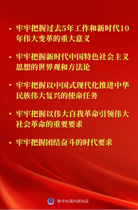 2022年10月17日,习近平总书记在参加党的二十大广西代表团讨论时强调,学习贯彻党的二十大精神要做到五个“牢牢把握”——