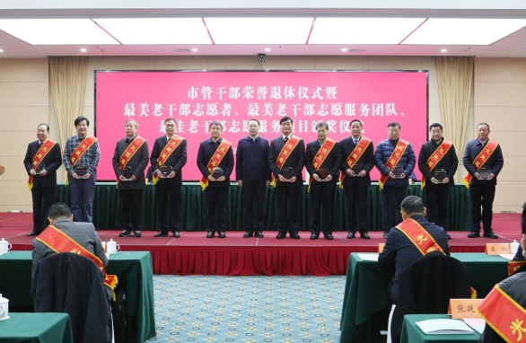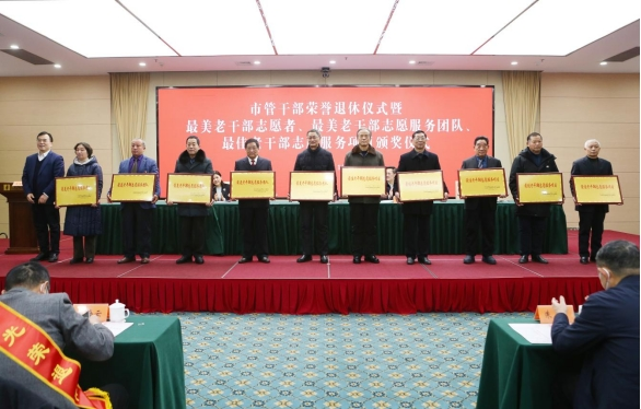 仪式上,市委组织部常务副部长朱长途宣读了2022年度退休市管干部名单,市委组织部副部长、市委老干部局局长、市委离退休干部工委书记朱广宏同志介绍了全市老干部志愿服务“最美”系列推选情况。活动现场为荣退干部颁发退休纪念铭座,为获评全市“最美老干部志愿者”“最美老干部志愿服务团队”“最佳老干部志愿服务项目”代表进行颁奖。荣退干部和老干部志愿服务“最美系列”代表作交流发言。