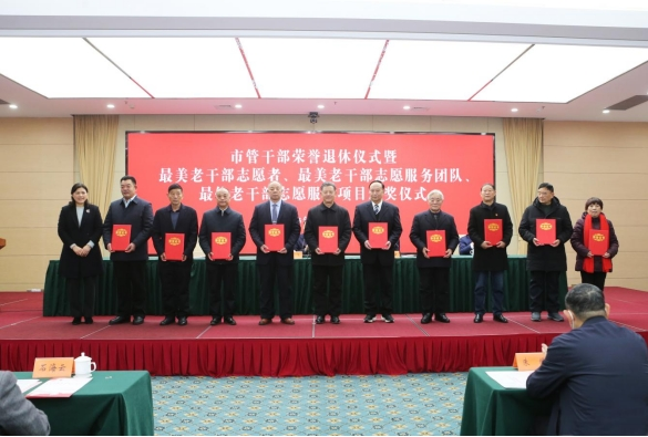 近日,江苏宿迁市举行市管干部荣誉退休暨老干部志愿服务“最美系列”颁奖仪式。市委常委、组织部部长、党校校长高飞出席活动并讲话。