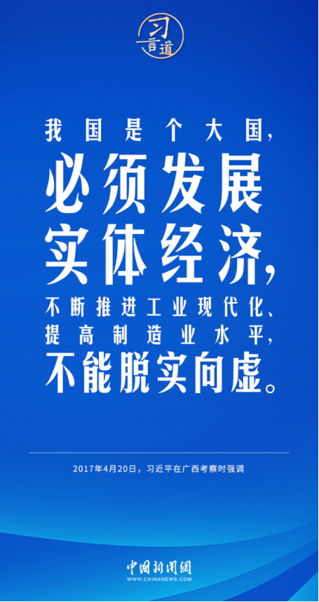 习近平总书记一直高度重视实体经济发展,多次作出重要论述,强调把发展经济的着力点放在实体经济上。