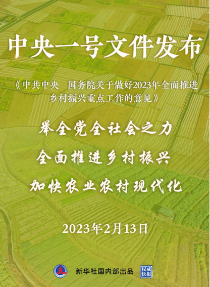 2023年中央一号文件13日发布