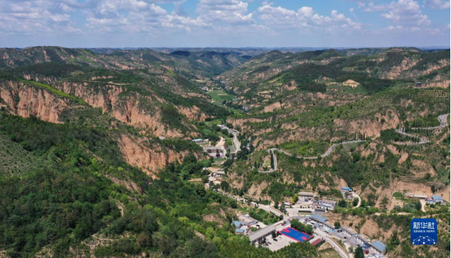 青山环抱的陕西省延安市延川县文安驿镇梁家河村(2019年8月12日摄,无人机照片)。新华社记者 陶明 摄