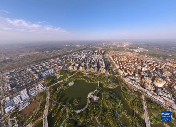 这是清晨时分的雄安新区容东片区(2022年9月8日摄,无人机照片)。新华社记者 邢广利 摄