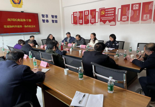 2月28日上午,重庆市南川区离退休干部党建协同共建第一协作组2023年度第一次会议在区公安局离退休干部党支部会议室召开。会议由区委办公室退休干部党支部书记余国华主持,区委办公室、区人大常委会办公室、区政府办公室、区政协办公室、区纪委监委机关、区委组织部、区委直属机关工委、区委党校、区公安局、区档案馆、区总工会等11单位的离退休干部党支部书记参加会议。区委组织部副部长、老干局局长、离退休干部工委书记张霄霄,区公安局党委委员、政治处主任吴成梅参加会议。