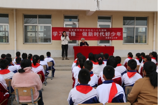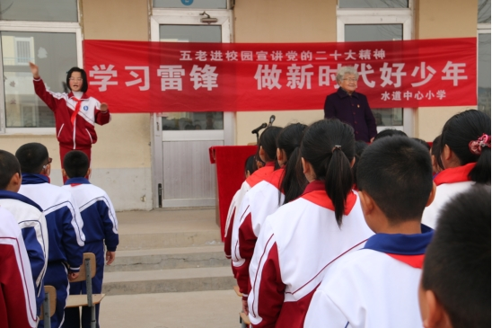 3月3日下午,初春的天气还有点微冷,但水道中心小学办公楼前,100多名小学生整齐排座,毅然聚精会神聆听烟台牟平区关工委“五老”宣讲团陈敏先奶奶为大家做“学习雷锋,做新时代好少年”报告。