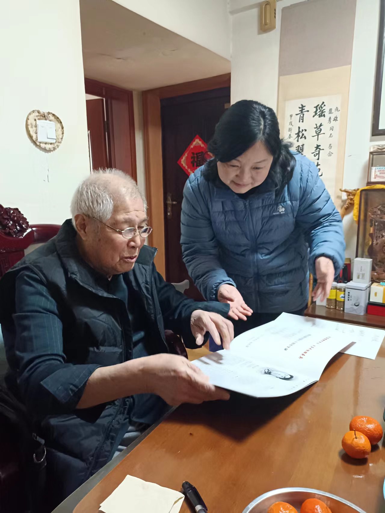 走访中,工作人员与老同志及其亲属亲切交谈,详细询问他们的日常生活情况、照护情况、健康状况、实际困难,逐一建档立卡,想方设法解决好老同志日常照顾、医疗护理、紧急救助等问题。当了解到95岁高龄的离休干部魏绪金有医疗费用不知道如何报销后,离退处的同志积极协调医院和有关部门,及时为他办理了报销手续。当了解到有的老同志不知道如何申请省直离休干部家护补贴时,工作人员及时编辑了相关政策明白纸,发到了老同志微信群,使更多的老同志都能更好对接社会化养老服务体系、用足用好国家民生保障政策。原省卫生厅厅长张植萍,95岁高龄,仍然积极学习时事,随时关注国家发展,厚重的剪报贴本,体现出一位老党员炽热的爱党情怀。走访中,工作人员还主动向老同志宣传党的二十大精神和全国“两会”精神,介绍全省卫生健康事业发展情况,把走访看望同送学上门、宣传党的方针政策紧密结合起来,切实让老同志感受到组织的关怀和温暖。