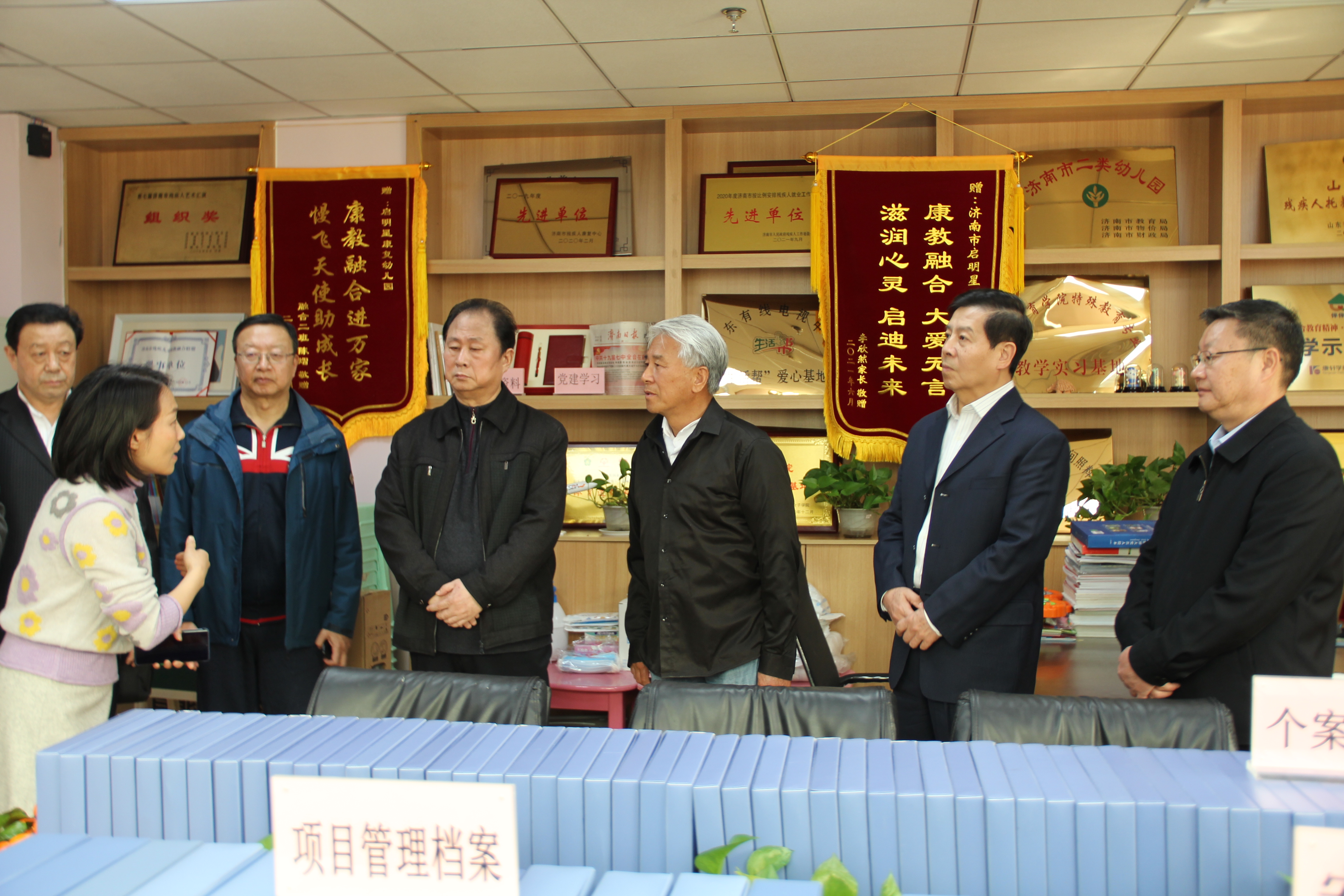 走访慰问活动首先来到济南市康复中心幼儿园,听取了幼儿园李国伟主任的情况介绍,走访慰问了残疾儿童和老师,并合影留念。走访活动结束后,协会艺术团进行了慰问演出。省老干部志愿者协会艺术团团长李立发表了热情洋溢的致词,他强调省老干部志愿者协会艺术团如何更好地发挥离退休干部在关心下一代、扶危济困等方面的重要作用,以实际行动传递“奉献 友爱 互助 进步”的志愿服务精神,进一步弘扬中华民族传统美德,建功新时代,奋进新征程。艺术团名誉团长王勇站在省残疾人联合会肢残人协会副主席的角度,对这次文化助残活动给予了高度的评价。