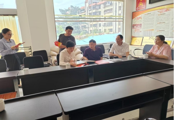图为州委老干部局班子成员深入基层调研指导离退休干部模范党支部创建