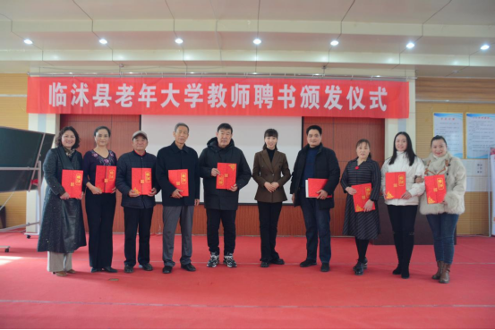 3月1日,临沂临沭县老年大学举办教师聘书颁发仪式,向9名任课教师颁发了聘书。