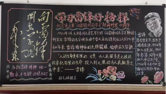 展。以“趣缘型”临时党支部为阵地,通过“党建+”模式在支部、活动组、社团协会开展“雷锋精神伴我行”板报展示活动,充分调动广大老干部热爱生活参与活动的积极性、能动性,有效引导离退休党员干部树立崇高理想追求,自觉践行社会主义核心价值观,激发爱党爱国爱社会主义巨大热情,更加坚定拥护“两个确立”、坚决做到“两个维护”,自觉把个人追求融入为党和人民事业奋斗中,为中国式现代化建设美丽玉溪添砖加瓦。
