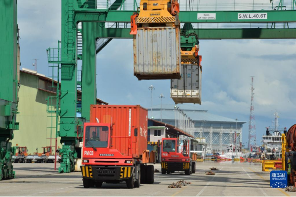 这是2022年1月1日拍摄的正在进行集装箱装卸作业的文莱摩拉港码头。文莱摩拉港由中国和文莱合资企业——摩拉港有限公司运营。2022年1月1日,区域全面经济伙伴关系协定(RCEP)生效实施。新华社发(杰弗里·黄摄)
