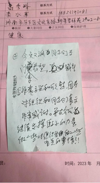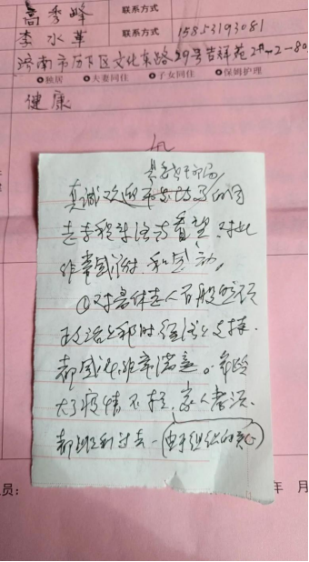 老同志们对慰问组远道而来的慰问深表谢意,表示将继续发挥余热,为党和人民的事业增添正能量,并祝嘉祥县发展越来越好。其中,县发改局(原粮食局)离休干部高秀峰老同志手写一封感谢信表达感谢之情。