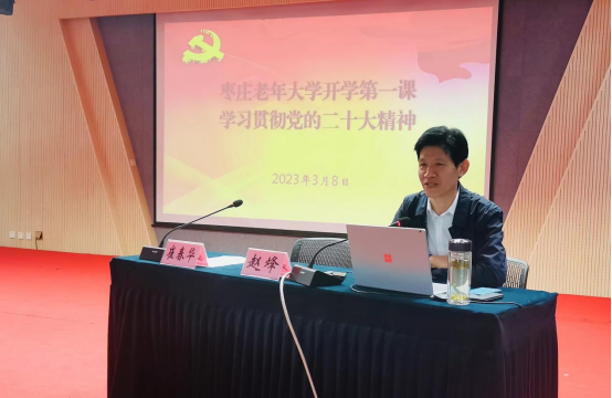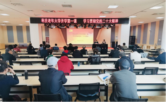 为深入学习贯彻党的二十大精神,充分发挥老干部活动中心、老年大学政治教育主阵地的作用,突出政治立校的办学宗旨,3月8日,举办“枣庄老年大学开学第一课——学习贯彻党的二十大精神”讲座。市老干部活动中心主任、枣庄老年大学校长、老干部党校校长崔春华主持。