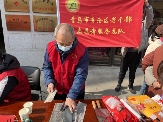 老干部志愿者纷纷发挥特长、踊跃参与辖区的志愿服务大集,切实地综合性、多样化、一站式服务送到居民身边,为群众“办实事、办好事、暖心事”,展现了老干部志愿者对雷锋精神的践行与继承。在区文明办、区委离退休干部工委组织的两场学雷锋便民志愿服务大集上,沧口街道剪爱学堂的志愿者们现场剪出生动传神的雷锋像,用将弘扬传统文化和传承雷锋雷锋精神紧密融合;从9点到11点,磨刀服务摊位一直排着,虎山路街道老干部志愿服务队队长用一块磨刀石、一桶水,不停歇地为居民们磨刀,给居民带来实实在在的方便。李村街道大崂路社区老干部志愿服务队现场为居民提供“爱在大崂拉拉呱”心理慰藉服务,并向年轻居民宣讲党的二十大精神,充分展现了老干部“退休不褪色、银发再生辉”的风采,用实际行动诠释新时代老干部的政治本色。兴华路街道兴华路社区的老干部志愿者除现场进行法律咨询,还提供家电维修、测量血压、卫生保健等服务项目,便民服务活动内容既丰富又实在;楼山街道翠湖社区的老干部志愿者通过剪纸、现场宣传等方式宣传雷锋精神;湘潭路统建社区老干部志愿者们发挥自身特长,积极参与活动为民排忧解难,并协助发放各类宣传资料200余份,切切实实让社区居民在自己的家门口赶一场特色志愿服务“大集”。