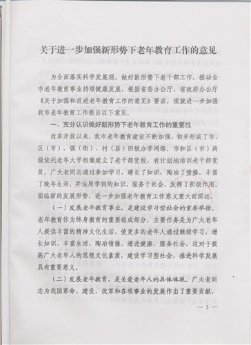 关于印发《关于进一步加强新形势下老年教育工作的意见》的通知