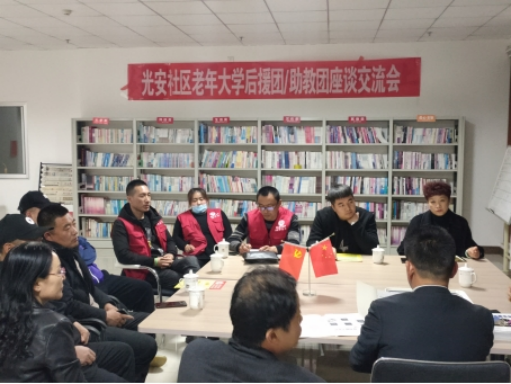 坚持目标导向,联席精准施策。持续推动中央《意见》和省委《若干措施》和烟台《关于推进“老年大学进社区”工作的指导意见》落地落细为目标,围绕落实社区老年大学教育功能、政治功能、惠民功能、平台功能等四项建设12项核心任务,组织社区老年大学助教团和后援团召开联席会议,明确目标与重点,突出优势与特点,通过会议力促各团思想上统一、优势上互补、行动上牵手,并建立联席协商工作机制,积极构建社区老年大学发展共同体,汇聚更多人力、物力、财力等社会资源与社区老年大学共商共建、共赢共享,共同参与老干部事业和老年教育事业,积极探索“党社群企”融合办学新路子,有效延伸事业链,提升价值链,推动产生更大助学集群效应和影响力,推动形成活泼生动的办学新格局。