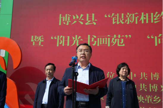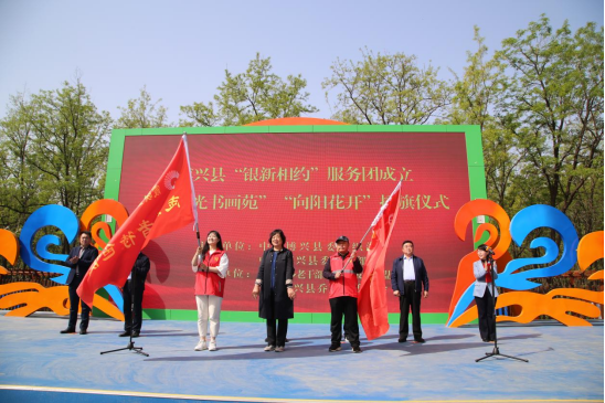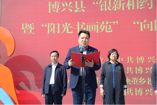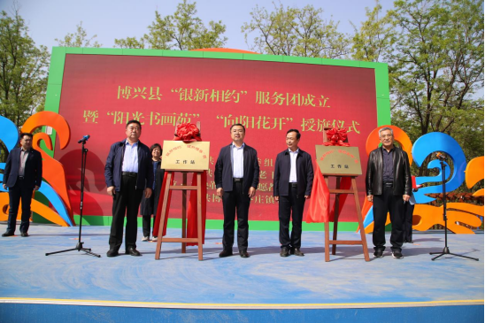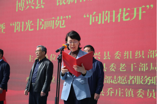 4月19日,“银新相约”服务团成立暨“阳光书画苑”“向阳花开”特色队授旗仪式在乔庄举行。滨州博兴县委常委、组织部部长,庞家镇党委书记黄广宪,博兴县政协原主席、“霞映董乡”老干部志愿者服务联盟党总支书记满学先,博兴县人大原副主任、“霞映董乡”老干部志愿者服务联盟主席张平,博兴县人大原副主任、三级调研员、“霞映董乡”老干部志愿者服务联盟副主席胡学伦,博兴县人大原副主任、“霞映董乡”老干部志愿者服务联盟副主席姚忠,博兴县委组织部副部长、老干部局局长任玉荣,乔庄镇党委书记刘文礼参加仪式。