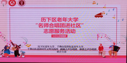 最美人间四月天,芳菲尽展醉春烟,近日,济南历下区老年大学“名师合唱团进社区”志愿服务活动在千佛山党群活动中心举行。和谐之声合唱团代表千佛山党群街道老年大学参加了此次活动。