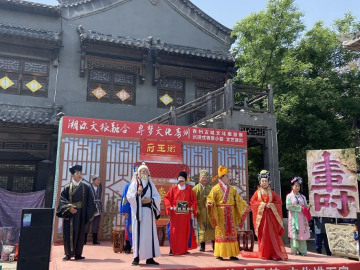 传统非遗展演焕发新活力。在古城景区内常态化非遗展演精彩纷呈,踢花键、抖空竹、焚香烙画、花边大套、挫琴、情景剧“雪蓑献寿”等非遗项目亮相千年古城,老干部艺术团和非遗艺术团的精彩展演,将整个古街串点成线,形成一道美丽的银色“风景线”,吸引广大市民游客们走进古城,了解青州,沉浸式体验非遗荟萃、戏曲展演等多彩活动,近距离感受传统文化的魅力。