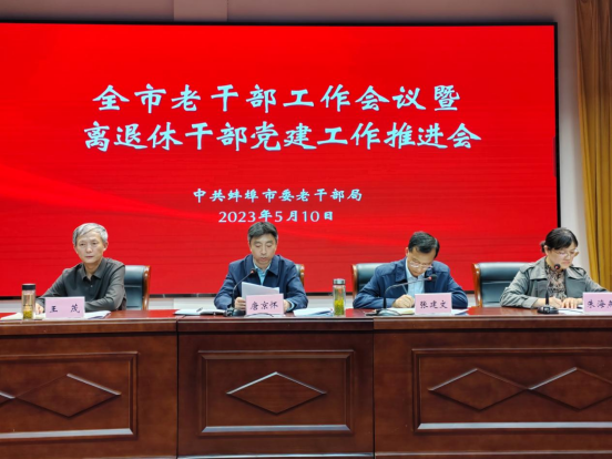 5月10日下午,安徽蚌埠市召开全市老干部工作会议暨离退休干部党建工作推进会。会议认真落实2023年全国、全省老干部局长会议精神,回顾总结了2022年工作,安排部署了今年重点任务,专题推进离退休干部党建工作。市委组织部副部长、老干部局局长唐京怀出席会议并讲话,市委老干部局副局长朱海燕主持会议,副局长张建文、二级调研员王茂出席会议。
