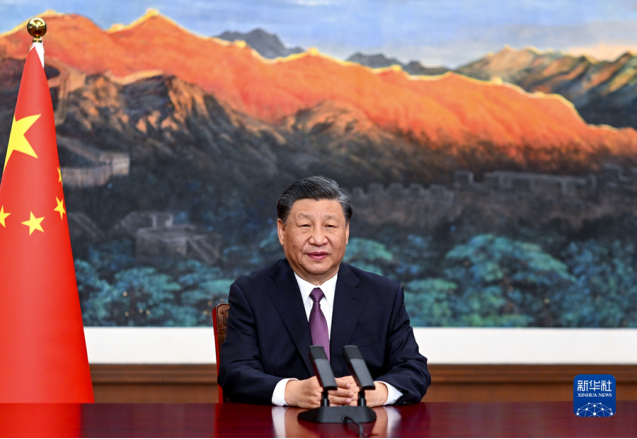 5月24日,国家主席习近平应邀以视频方式出席欧亚经济联盟第二届欧亚经济论坛全会开幕式并致辞。新华社记者 李学仁 摄