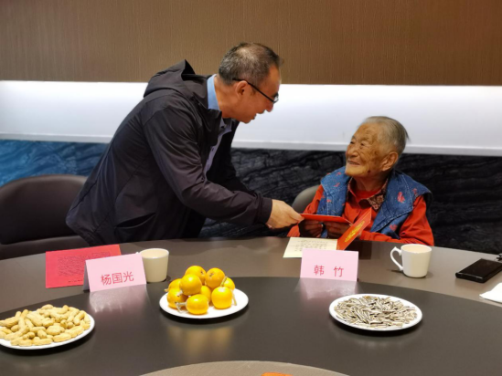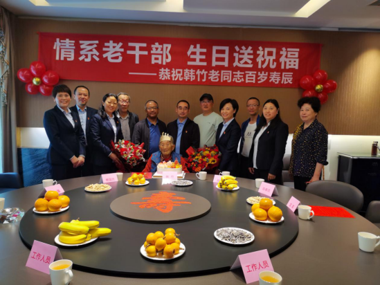 活动现场,大家与韩竹老同志亲切交谈,询问韩竹老同志的身体情况和生活现状,并祝愿老人健康长寿、生活幸福。韩竹老同志含着热泪说道:“感谢组织的关心和照顾,感谢各级领导一直以来对我的惦记和关怀,这是我过得最难忘的生日,我心里非常高兴、非常感动,谢谢大家……”韩竹女儿表示:“正是有党的好政策和组织的关心,才有我母亲今天的健康长寿和幸福晚年。”