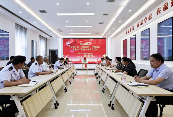 6月16日,临沂莒南税务“金税红霞•齐鲁故园”异地居住离退休干部党支部成立仪式在县税务文化中心举行。山东省税务局老干部处一级调研员刘筱庆、一级主任科员杨敏,临沂市委老干部局副局长、市离退休干部党工委副书记王金芳,临沂市税务局二级高级主办王勇、老干部科科长王友浩,莒南县委老干部局局长、县离退休干部党工委副书记王玉征,“金税红霞•齐鲁故园”异地居住离退休干部党支部全体党员及莒南县税务局老干部党支部代表等20余人出席仪式。县局党委书记、局长杨宝伟主持仪式。