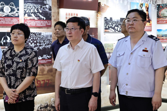 仪式开始前,省、市、县领导与老同志一起到莒南县税务局党性教育基地开展联建共建活动,感悟“党群同心、军民情深、水乳 交融、生死与共”的沂蒙精神,感受莒南红色税收和新时代税收现代化的发展历程。
