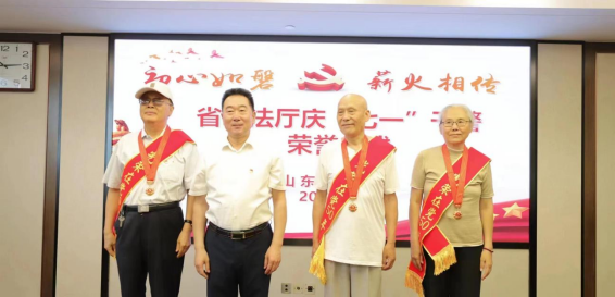 为推动学习贯彻习近平新时代中国特色社会主义思想主题教育走深走实,落实党中央关于加强新时代离退休干部党建工作的意见,增强干警职业荣誉感、自豪感、归属感和幸福感,6月25日,山东省司法厅隆重举行庆“七一”干警荣誉仪式。省司法厅党委书记、厅长杨增胜出席会议并讲话,省委主题教育第七巡回指导组成员张成柱到会指导,厅领导刘振远、田秀娟出席。