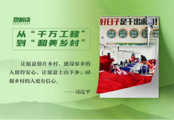 央视网《热解读》栏目特别策划“从‘千万工程’到‘和美乡村’”系列解读文章,紧扣乡村振兴战略“产业兴旺、生态宜居、乡风文明、治理有效、生活富裕”总要求,全面展现新时代中国多措并举建设宜居宜业和美乡村的生动实践。
