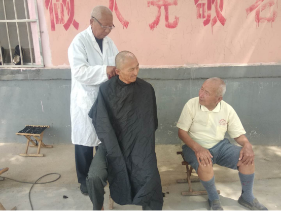 他不仅为本村老弱病残人理发,还经常驾驶挂着“爱心理发”牌子的三轮车,到西盐、唐家、孙耿街等村庄和孙耿街道敬老院、艾老村敬老院等地方义务上门为老人们理发。