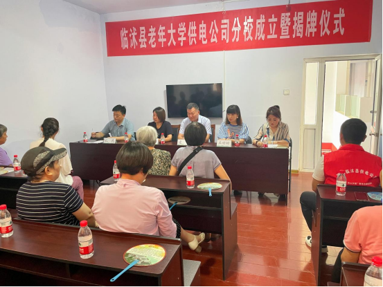 7月18日,临沂临沭县老年大学供电公司分校举行揭牌仪式。县委老干部局副局长张瑜和供电公司党委书记凌永共同为分校揭牌,供电公司退休职工二十余人参加。