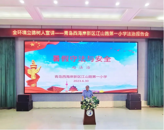 老干部志愿者来到江山路第一小学,以“暑假守法与安全”为主题,为全校师生作了报告,进一步增强青少年安全意识,防范暑期安全事故的发生。