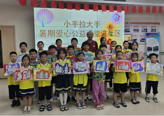 老干部志愿者走进东风路社区,开设“爱心公益课堂”,丰富少年儿童的暑期文化学习生活,提升未成年人艺术素质,促进青少年健康快乐成长,助力培养德智体美劳全面发展的时代新人。