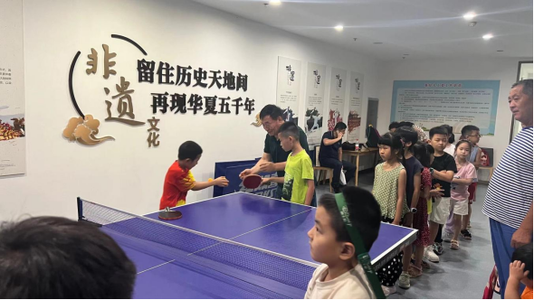 活动开始,吴老师首先为现场的青少年进行了乒乓球基础理论知识讲解,使大家对乒乓球基本操作有初步的了解认识。随后与他的优秀学生一道,为大家进行了乒乓球实操展示。实操展示先由吴老师的优秀学生代表们现场展示多种打法,吴老师在一旁为大家解释各种打法以及其技术特点,精彩的动作展示,目不暇接的对拉技术让现场气氛热烈,兴致高涨。随后,同学们踊跃参与,吴老师亲自执教,一对一、手把手让零基础学生感受乒乓球基础动作,了解良好的动作定型。通过理论与实际相结合,让大家一进步感受到了乒乓球的独特魅力,增加了青少年对乒乓球运动的喜爱与兴趣,引导青少年在体育锻炼中享受乐趣、增强体质、锤炼意志。
