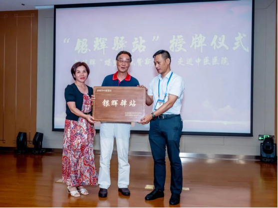 会上,董安生和唐飞琴向余姚市中医医院授予了“银辉驿站”站牌,徐启怀接牌。