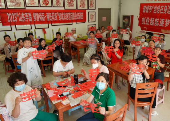 邹城市文博苑社区内,有一间潘素琴的工作室。目前,长期跟着她学习的弟子有25个,其中有两个出国了,在国外还坚持剪纸呢。带弟子,到文化馆、图书馆上公益剪纸课,到张庄、田黄、大束、郭里、石墙、北宿等镇街的孟子学堂当讲师,到文博苑小区、万佳阳光小区等社区开设剪纸讲座……潘素琴利用各种平台积极传播剪纸艺术,让更多的人感受到它的魅力。“传承是民间艺术发展最为重要的环节。作为非遗传承人,让剪纸艺术深入到更多人的内心,让更多人了解它、喜欢它,是我的最大心愿也是我的责任。”63岁的潘素琴表示自己还不算老,还能为传承剪纸艺术再多做些事情。
