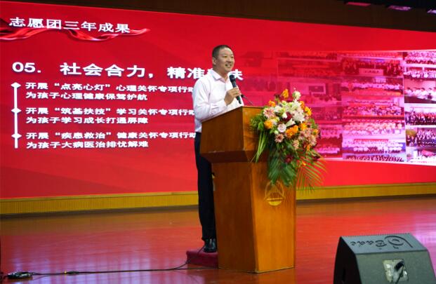 市关工主任徐华东在讲话中指出,关爱帮扶孤困儿童,是一项民生事业、崇高的事业,更是未来事业、奉献的事业。希望全市各级关工委坚持以习近平新时代中国特色社会主义思想为指导,坚持立德树人这一根本任务,想青少年所需,用心用情用力为少年儿童健康成长创造良好环境。希望有关部门携起手来,加强沟通协调,积极参与到助学、助困、结对帮扶等关爱活动中来,合力为青少年办实事、办好事、解难事。希望社会各界人士、企业家一如既往的弘扬慈善精神,在条件允许的情况下,尽可能献一份爱心,积少成多、形成合力。三年是一个重要节点,希望志愿服务团在认真总结经验和不足的基础上,不断完善各项规章制度,不断提高志愿服务能力,深入研究、科学制定未来发展规划,在队伍培训、精准帮扶、开展集体活动、预防未成年人犯罪、帮扶经验进一步梳理总结研究、帮扶措施办法进一步完善提升、党建引领等方面汇聚帮扶合力,提高帮扶能力,优化帮扶平台,拿出更大的耐心、诚心、热心做好帮扶工作,助力孤困儿童幸福成长。
