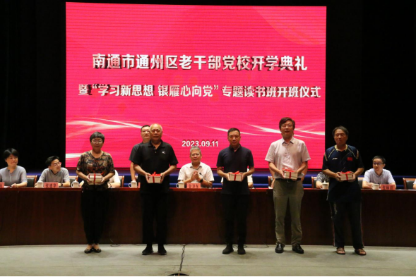 开班仪式上,徐训友围绕“如何发挥老干部党校在思想政治引领中的主渠道主阵地作用”作重要讲话,他勉励广大离退休党员继续坚定“不忘初心、忠心向党”的政治本色、继续保持“奉献不止、以德化人”的高尚情操、继续弘扬“牢记宗旨、为国利民”的崇高精神,争当坚决做到“两个维护”的表率、构建良好“家风民风”的表率、忠诚践行“初心使命”的表率,为全面推进中国式现代化南通新实践贡献添砖加瓦。南通开放大学党委副书记、校长金卫东,通州区委组织部副部长、老干部局局长、离退休干部工委书记卫志云联合为“银雁学堂”揭牌。南通市委党校副校长赵园园以“开学第一课”的形式,为全体师生作《深入学习习近平新时代中国特色社会主义思想》专题党课。