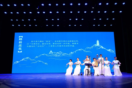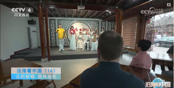 十里长街旁的路桥曲艺馆里,路桥莲花代表性传承人、文化馆退休干部王颖和其带领的莲花团队正在表演路桥莲花曲目,观众里有学生、本地居民、外国友人,吸引了中央电视台中文国际频道,《远方的家》栏目组现场对话采访,聚焦并拍摄非遗表演,专题报道《古韵新唱 路桥莲花》。