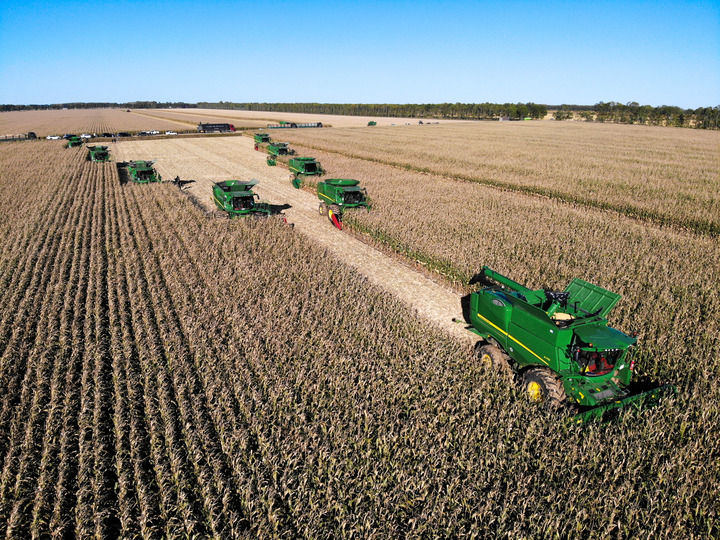 9月20日在位于黑龙江双鸭山市友谊县的北大荒农业股份有限公司友谊分公司一地块拍摄的秋收现场(无人机照片)。新华社记者 王松 摄