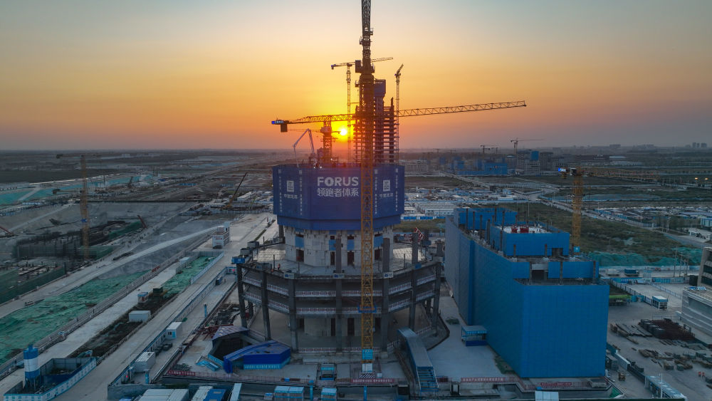 沐浴着金秋的晨光,雄安新区启动区里的中国中化总部基地建设现场塔吊高矗,八角形造型已轮廓初显。这座大楼采用白洋淀“金芦苇”设计理念,寓意生生不息、繁茂生长。