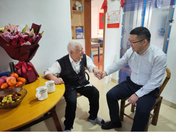 九九重阳日,孝亲敬老行。10月17日,国网余姚市供电公司党委委员、纪委书记、工会主席耿飞带队走访慰问90岁以上离退休人员,送上节日的问候和组织的关怀。